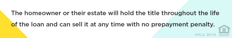 TRUTH: The federally insured reverse mortgage program has been around for over 30 years, but giving up the title at closing or if the owner passes away has never been part of the process. The homeowner or their estate will hold the title throughout the life of the loan and can sell it at any time with no prepayment penalty.